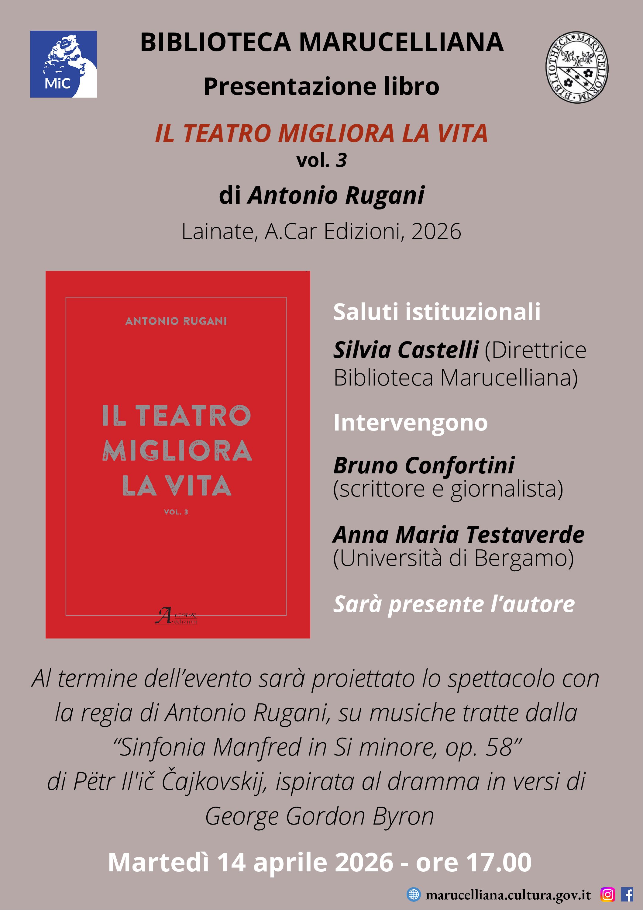 Il 14 aprile 2026 sarà la volta del terzo volume di Antonio Rugani dal titolo Il teatro migliora la vita.